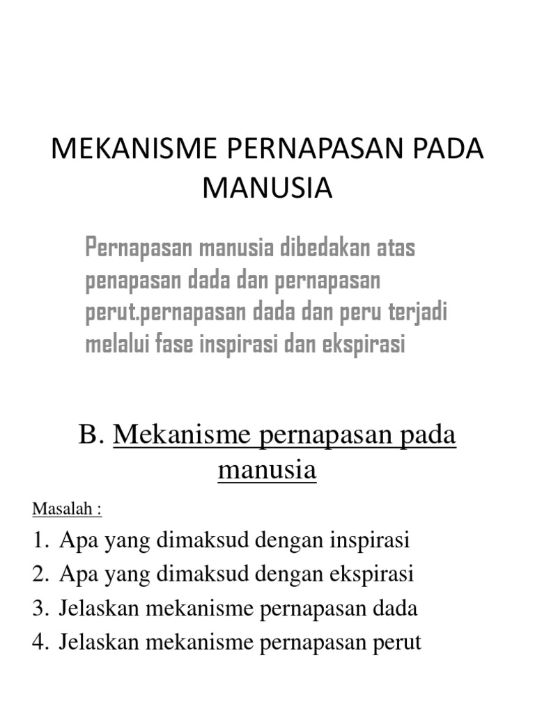Untuk lebih jelasnya, proses bernapas diawali dengan oksigen yang dibawa ke tubuh melalui udara yang dihirup ke dalam dan diangkut ke seluruh mekanisme pernapasan pada manusia ada 2 yaitu pernafasan dada dan pernafasan perut namun di artikel ini kami lebih menjelaskan pada organ. Proses pernafasan manusia, biologi sma, kelas xi, yosi skanda mirza. Bernapas adalah proses fisik yang terdiri dari inhalasi, ekshalasi. Pertukaran o2 dan co2 dalam pernafasan : Proses pernapasan pada manusia dapat terjadi.